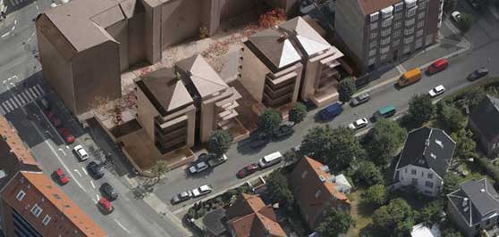 På Sigbrits Alle er der opført 2 elegante punkthuse med 22 lejligheder på ialt 1800 kvm. Arkitekt, Vandkunsten.